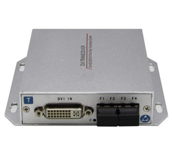The DVI video converter transmits 1-channel DVI video signal and 1-channel stereo audio and 1-ch data RS232 over one fiber, single mode or multimode, without compression, scaling and adjustments.
