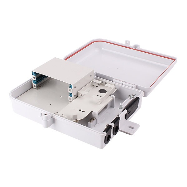 This 16 port Indoor / Outdoor Wall Mounted Access Termination FTTH Optical Fiber Distribution Box Enclosure comes with 2 ports for fiber optic cables both indoor and outdoor are workable. And there are 16 ports for drop fiber optic cable 3.0*2.0mm diameter. Inside this splitter distribution box, you can assembly 1:16 PLC LGX optical splitter connected with adapters. Then the drop cable with connectors can be easily connected with the adapters for use.