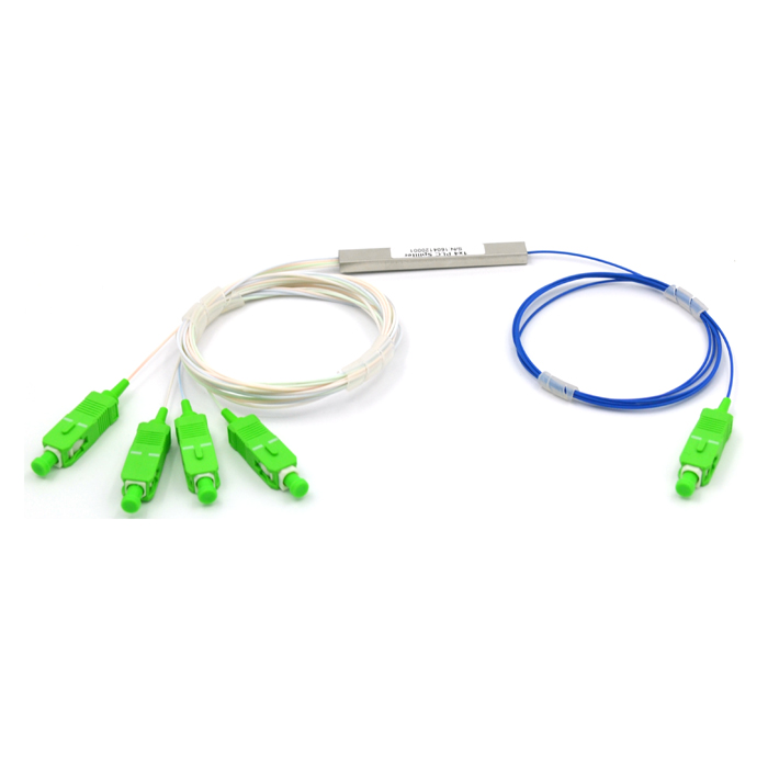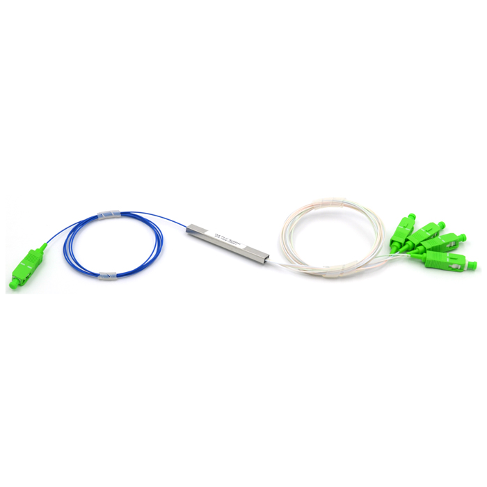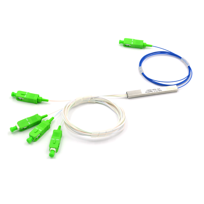 1X4 Blockless Mini 0.9mm Fiber Optic Splitter with SC/APC Connectors PLC Splitter means planar light-wave circuit splitter, which is based on planar light wave technology, widely used in FTTX,EPOM,BPON,GPON .We launched 1xN,2XN PLC splitter with consistent performance, low optical Insertion loss, low polarization dependent Loss, high reliability and stability , superior environmental and mechanical characteristics, and fast installation. They also enable more effective monitoring and management of fiber optical networks. All wavelengths (1260-1620nm) are not sensitive. And our products meet Telcordia 1209,1221 standard ,ROHS.