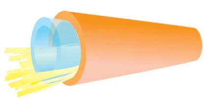 The 3.0mm Furcation Tube has an inner hollow tube with a pull string and will receive a 250μm buffer fiber. Includes aramid yarn strength member. Outer PVC jacket is Orange colored.