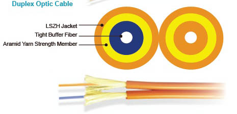 62.5/125um Multimode Duplex Zipcord Tight Buffer Plenum Indoor Fiber Optic Cable This duplex cable consist of two child single core fiber. Each single fiber is coated with 250um soft plastic, and then covered with a 900um tight buffer thick layer of hard plastic, which add some fiber protection. The Kevlar yarn material ensure a good performance of tensile strenghth. And the Flame retardant outer jacket could be used in Riser enviroment. The cable diameter of each child single-fiber is 1.6mm, 2.0mm, 3.0mm optional.