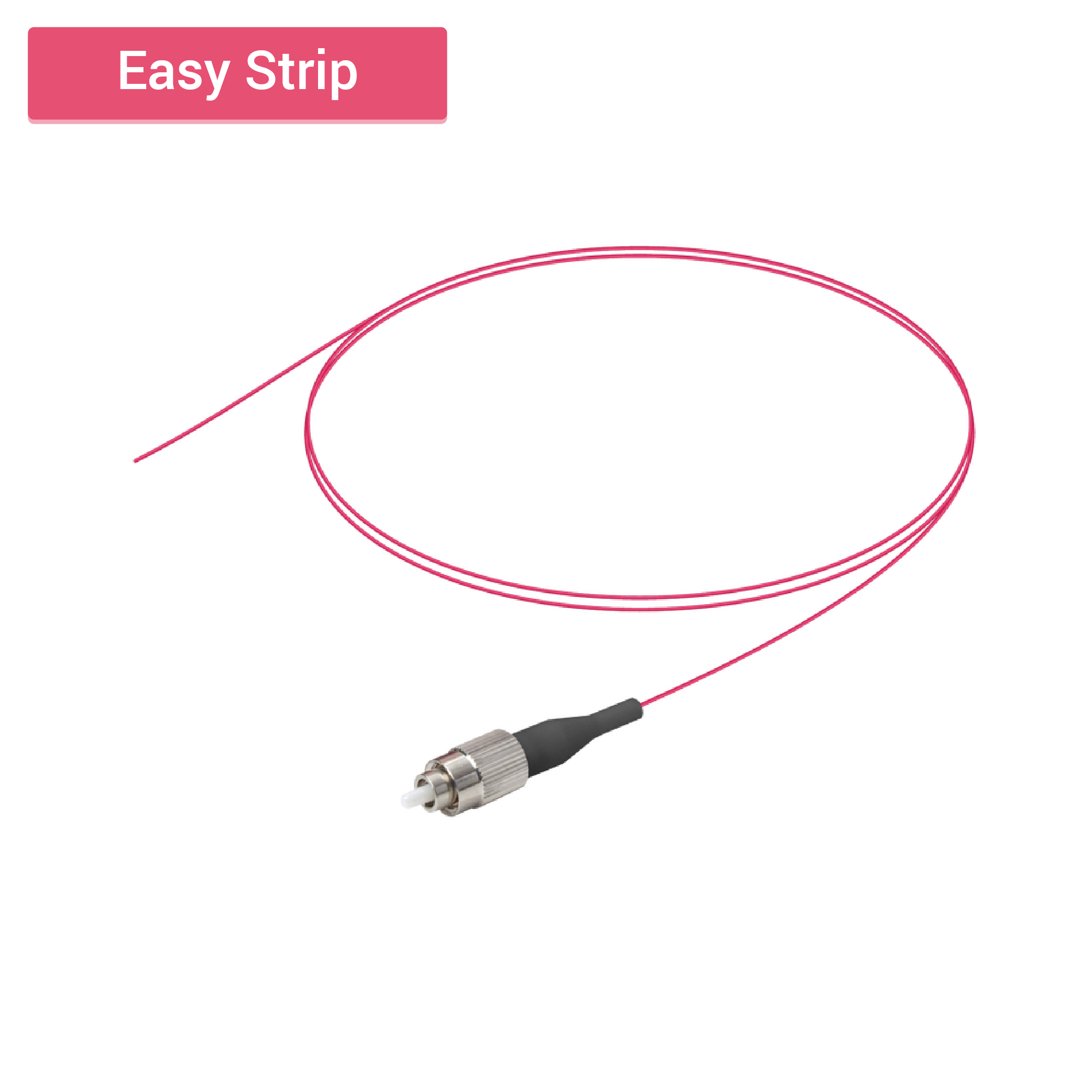 0.9 mm diameter pigtail cables are manufactured with easy-to-strip tubes and ITU-T G651.OM4 bend sensitive fibers, then assembled at one end with FC type connector. TIA / EIA-598 color standard is used for 12-color pigtail sets.