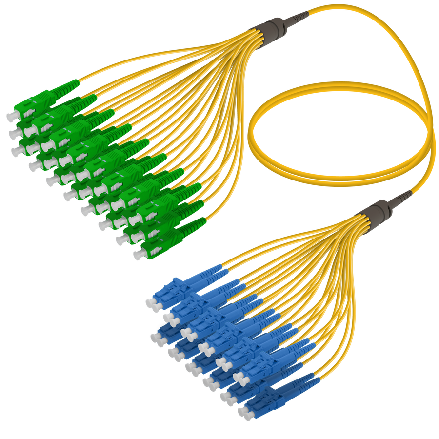 What Is SC/APC-LC/UPC|24 Fibers Fanout|Single Mode G657.A2|3.0/1.8mm
