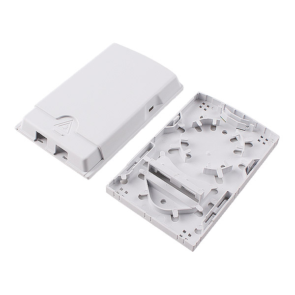 This 2 port Outdoor Wall Mounted Optical Fiber Distribution Box FTTH Termination Box is used for splicing and termination between indoor SC LC FC fiber optic cable and pigtails. used for wall mounted to connect indoor cable with drop cables.