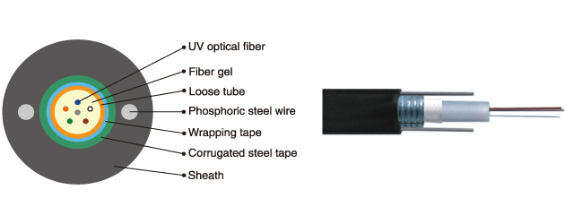 GYXTW Fiber Optic Cable Unitube armored cable Aerial Duct Direct Burial two strength members water-resistant filling Jelly