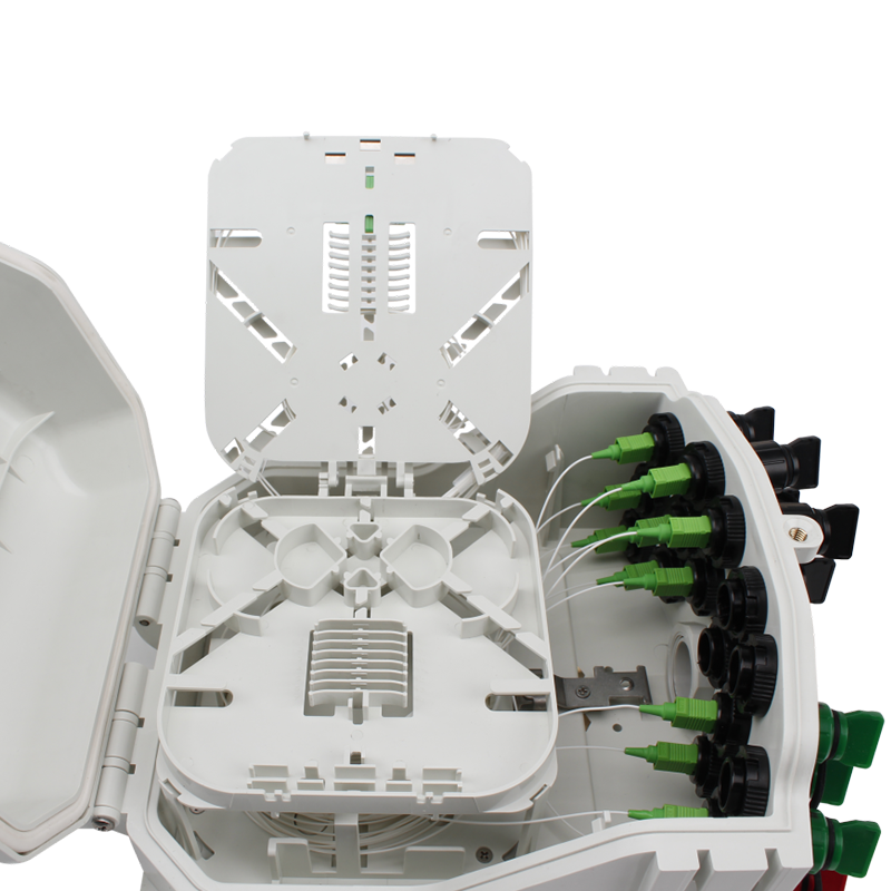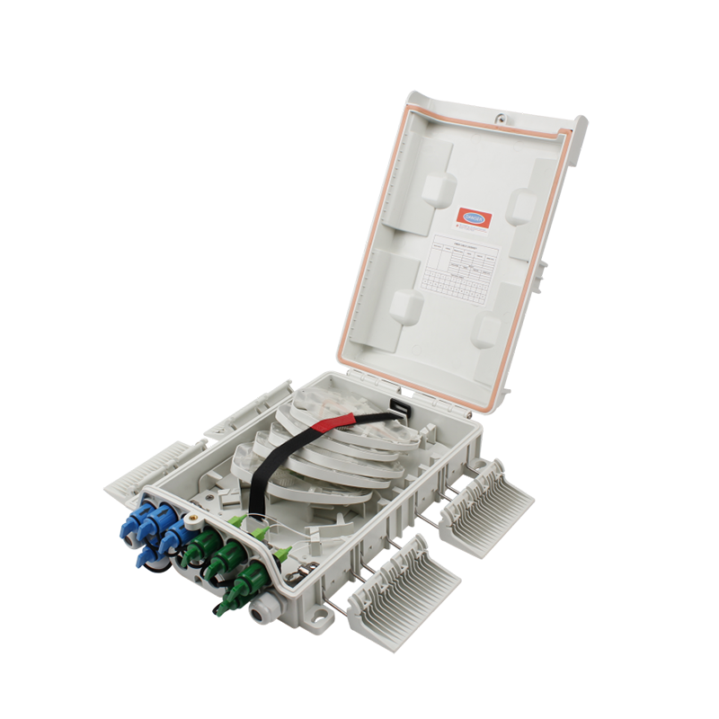 This 8 port Indoor / Outdoor Wall / Pole Mounted FTTH Optical Fiber Splitter Distribution Box with Waterproof Fast Connection is used for wall mounted or pole mounted splicing and termination. It can come with 8 pcs waterproof SC adapters to fit with SC waterproof connectors directly,which will make the outdoor cabling extremely easy by plugging into the adapters. When you don’t specify,this Fiber Splitter Distribution Box does not contain this kind of waterproof adapters.