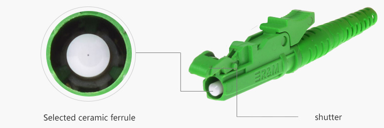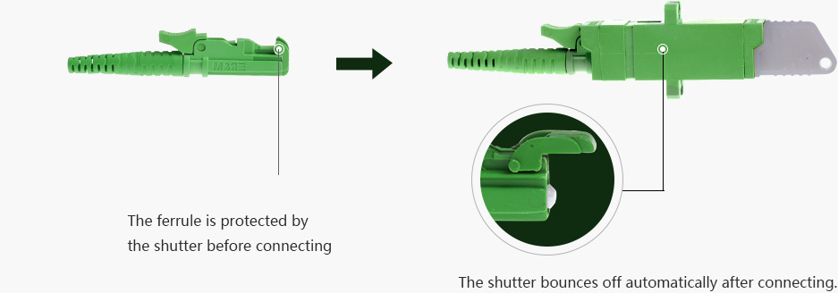 The E2000 optical fiber connector comes with a spring louver to protect the ferrule from external contaminants. And effectively prevent laser radiation from causing harm to the human body.