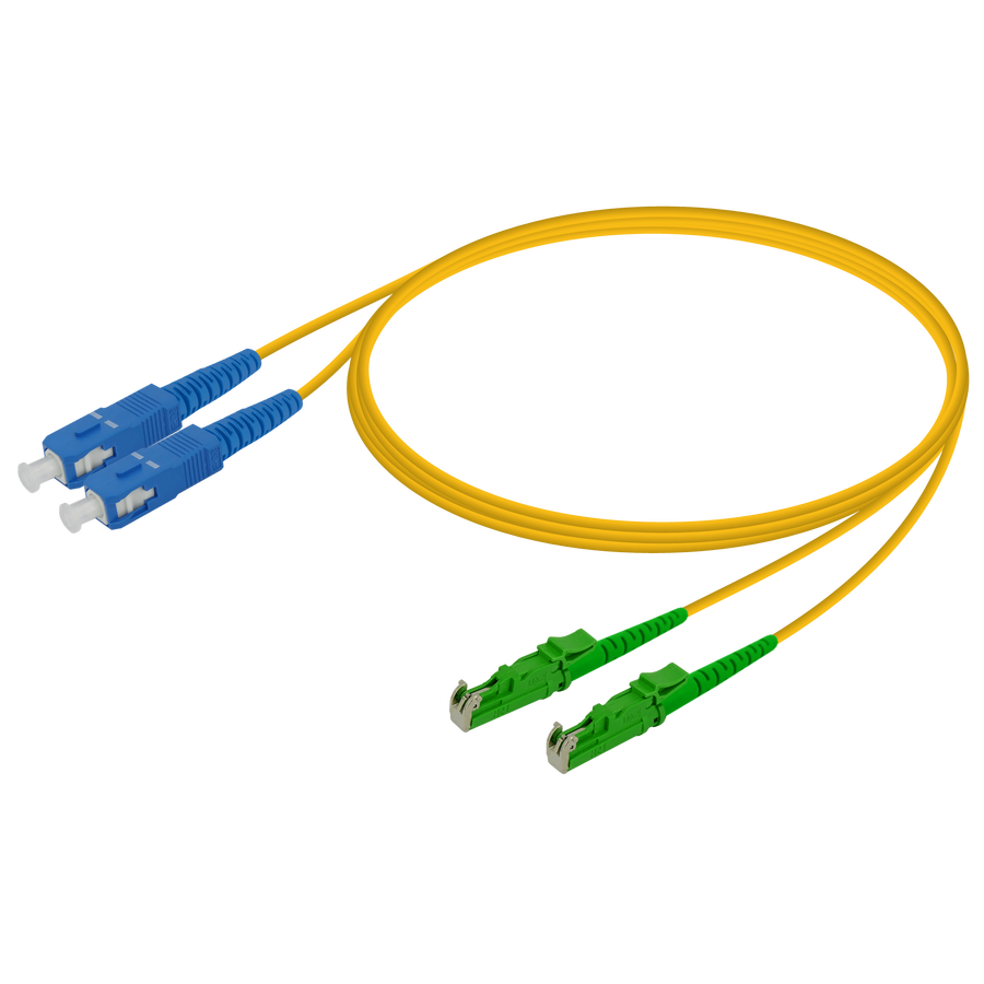 2.0×4.1 duplex diameter patch cord cables are manufactured with ITU-T G657.A2 bend sensitive fibers, then assembled at one end with SC type; other end with LSH type connectors.