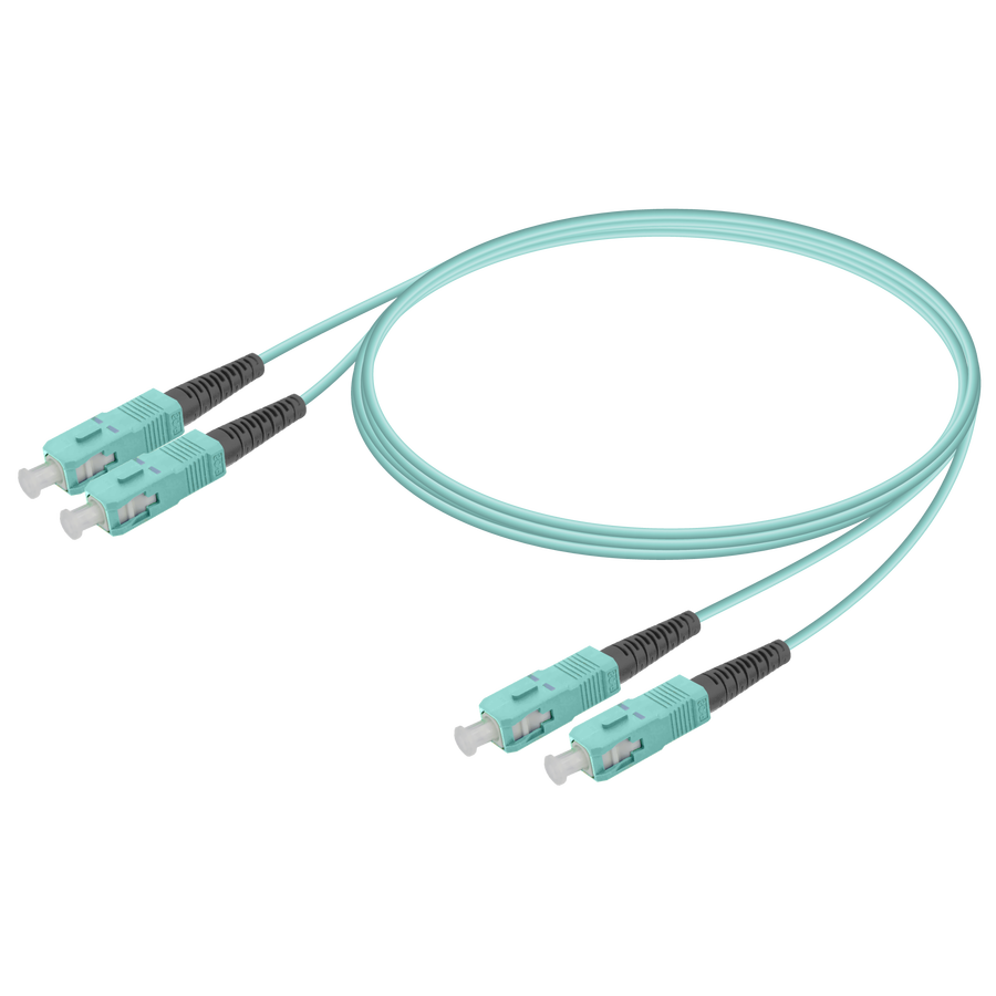 2.0×4.1 duplex patch cord cables are manufactured with ITU-T G651.OM3 bend sensitive fibers, then assembled at both two ends with SC type connectors.