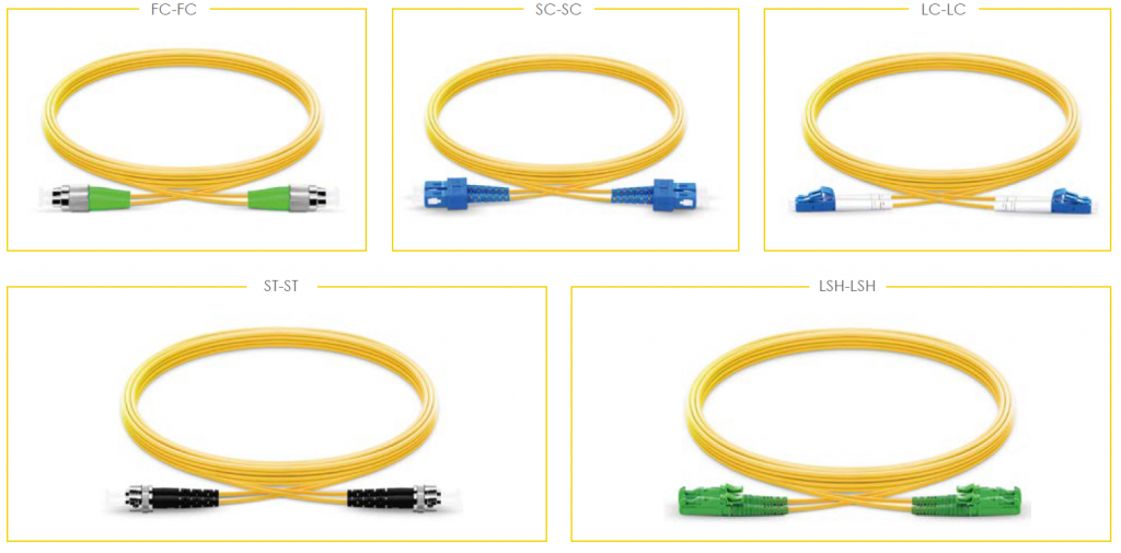 1. Single mode fiber patch cables: Single mode fiber optic patch cables use 9/125 micron bulk single mode fiber cable and single mode fiber optic connectors at both ends. Single mode fiber optic cable jacket color is usually yellow. Here is the explanation of what is single mode and single mode fiber.